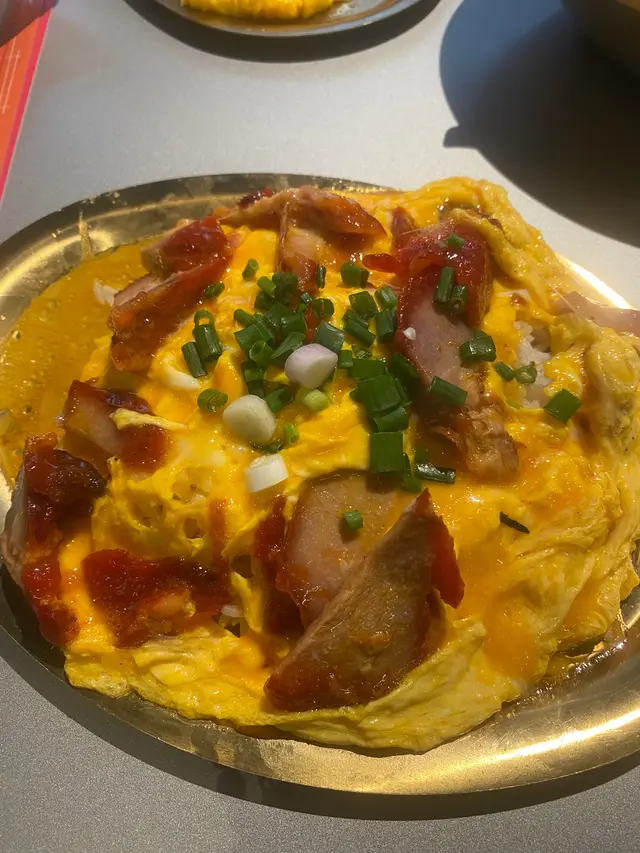本身以為星期日會少啲人,但係原來好多人都專登過嚟朝聖😳三點幾去到已經有好多人等緊,餐廳入邊都full晒🤯今次就叫咗佢哋最出名嘅餐肉炒蛋熱香餅漢堡($36),滑蛋叉燒飯($76),芝士鹹牛肉巨型奄列餐($46)同埋老荔特餐($55)😋