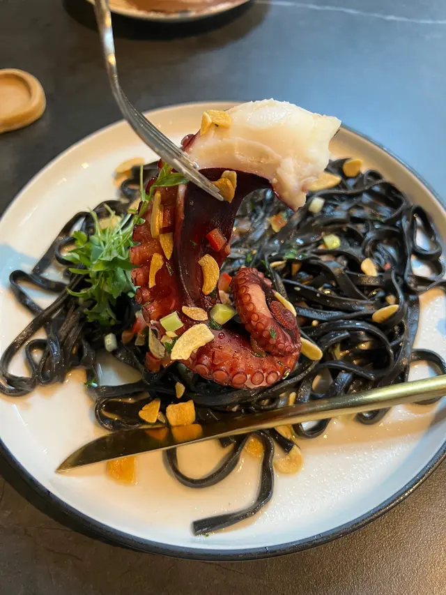 慢煮西班牙八爪魚配墨魚汁意粉 $138