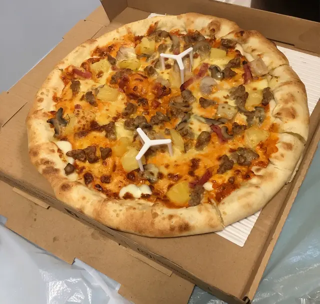 超級夏威夷比薩,配料正常,但不算太多,肉粒、菠蘿、蘑菇、火腿、醬。