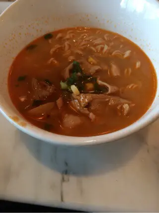 朋友的叉燒湯意粉,味道淡而無味,可惜~