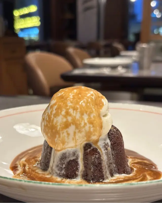 店員會即場淋上拖肥醬,個醬汁簡直係靈魂,配搭雲呢拿雪糕同朱古力布甸,整體好夾好好味,甜品有驚喜~