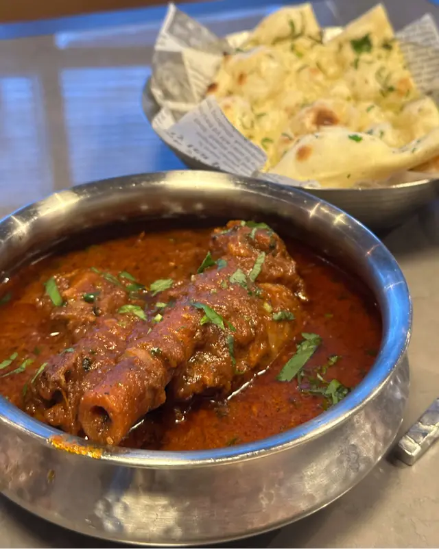 慢燉羊腿肉,肉質軟腍,可以輕易切開食用,醬汁係紅咖喱,口味濃郁,加入多種印度香料,味道好豐富,印度烤餅有蒜蓉味,煙韌香口,餅底仲有少少脆,點醬一齊食非常正~