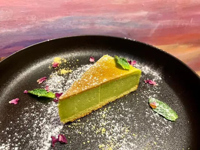呢個宇治抹茶芝士蛋糕質地比較實,用嘅係宇治抹茶粉,所以有少少甘,但唔會苦,係大人口味!
