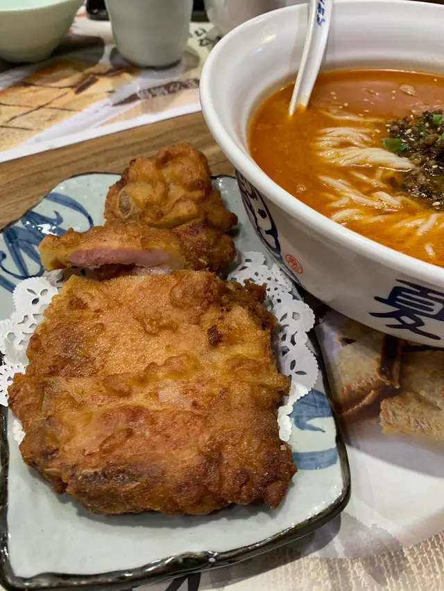 依款擔擔麵湯底唔算太濃,但辣味都好重,麻醬味無咁多,陽春麵質頗有咬口;至於酥炸排骨都炸得好香脆,外皮唔會太厚粉,醃料適中,吃起來不會太咸。