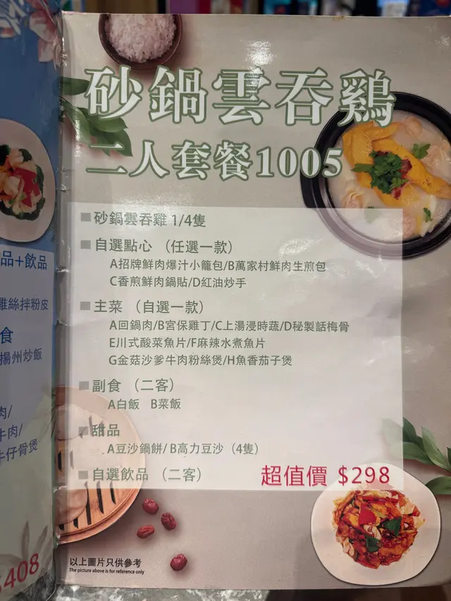 之後看到有一款砂鍋雲吞雞套餐,價格相宜,而且包了很多款食物,所以最後我們決定點了這個套餐!