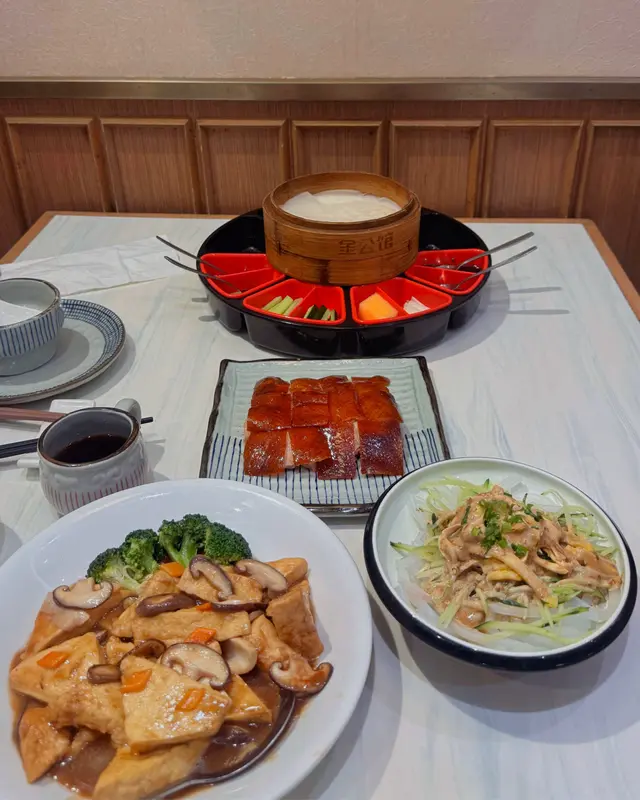 今次試嘅二人套餐非常抵食,菜式包括雞絲粉皮、杏汁白肺湯、半隻北京填鴨、紅燒豆腐、白飯及桂花糕。