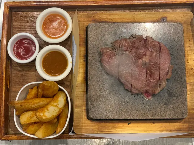 牛扒好大塊, 又厚. 以石燒形式上, 聽到牛扒係上面燒既聲, 已經流哂口水.