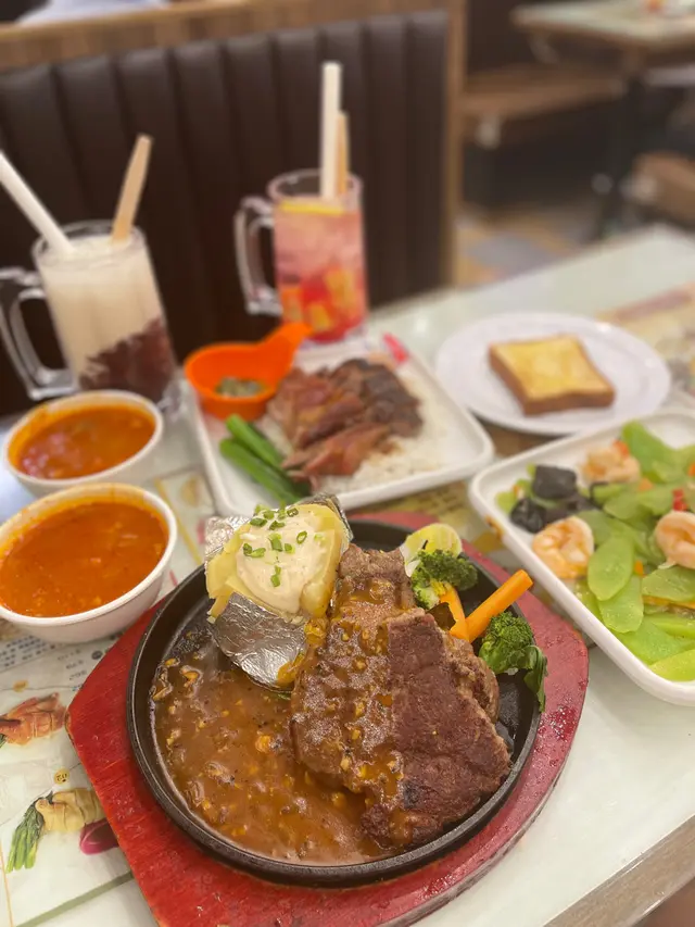 牛柳外表微焦肉質軟嫩,倒上黑椒汁係鐵板,頓時冒出熱氣,黑椒汁香味撲鼻!鐵板套餐除左可以配薯菜,仲可以配飯或者意粉!今次揀左薯菜,薯菜份量好多,夠晒飽肚。另外,仲有餐湯同丹麥麵包,真係好豐富!