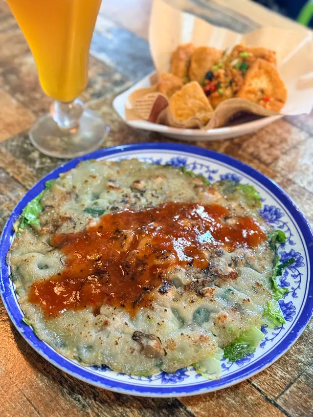 蚵仔煎煎得金黃酥脆,配上甜辣醬汁,口感層次豐富。口感軟嫩濕潤。