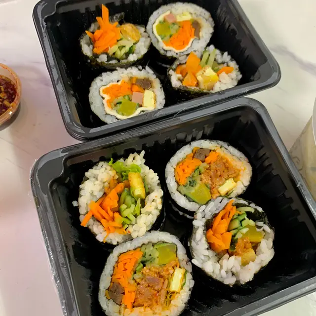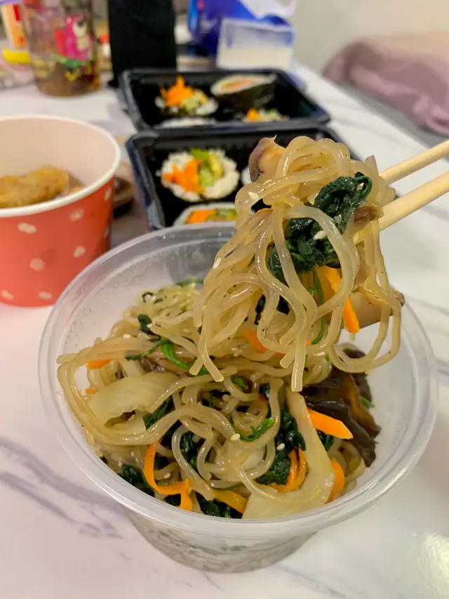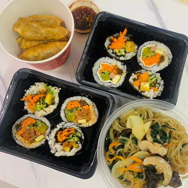 叫左2款飯捲,炸餃子同韓式拌粉絲。