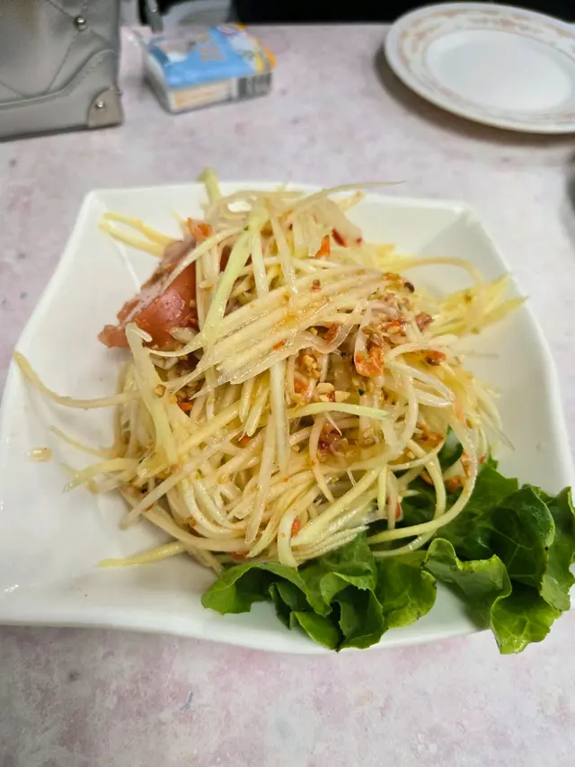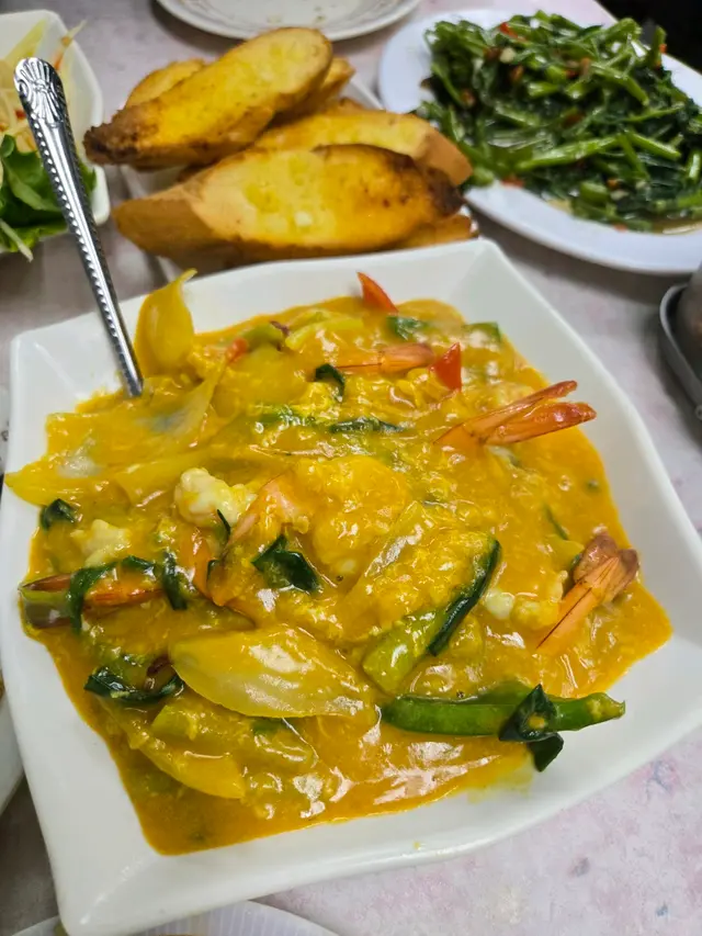 樓面姐姐非常熱情,非常好傾。咁我地就點左以下菜式,青木瓜沙律,味道帶少辣,非常爽甜。之後便是是泰式咖哩蝦,它們店用的是較細隻的蝦,但都香咖哩味的,再配上蒜蓉包非常之夾。泰式炒通菜,非常之有鑊氣,備註了小辣,份量也不少,非常好吃。最後就是泰式豬肉炒河,完全是在泰國吃的味道,有鑊氣,有香氣,吃完我們就滿意地離開了。