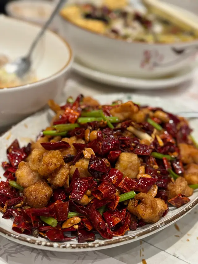 辣子雞丁 - 炸得好香口,辣椒同花椒嘅香味有出到,雞肉粒外脆內嫩,雖然辣椒睇落多過雞,但係咁先正宗嘛!