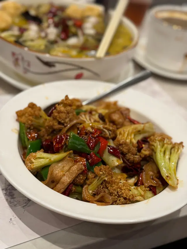 乾鍋花菜 - 惹味之選!花菜爽脆,吸收咗乾鍋嘅香辣味,愈食愈想食。