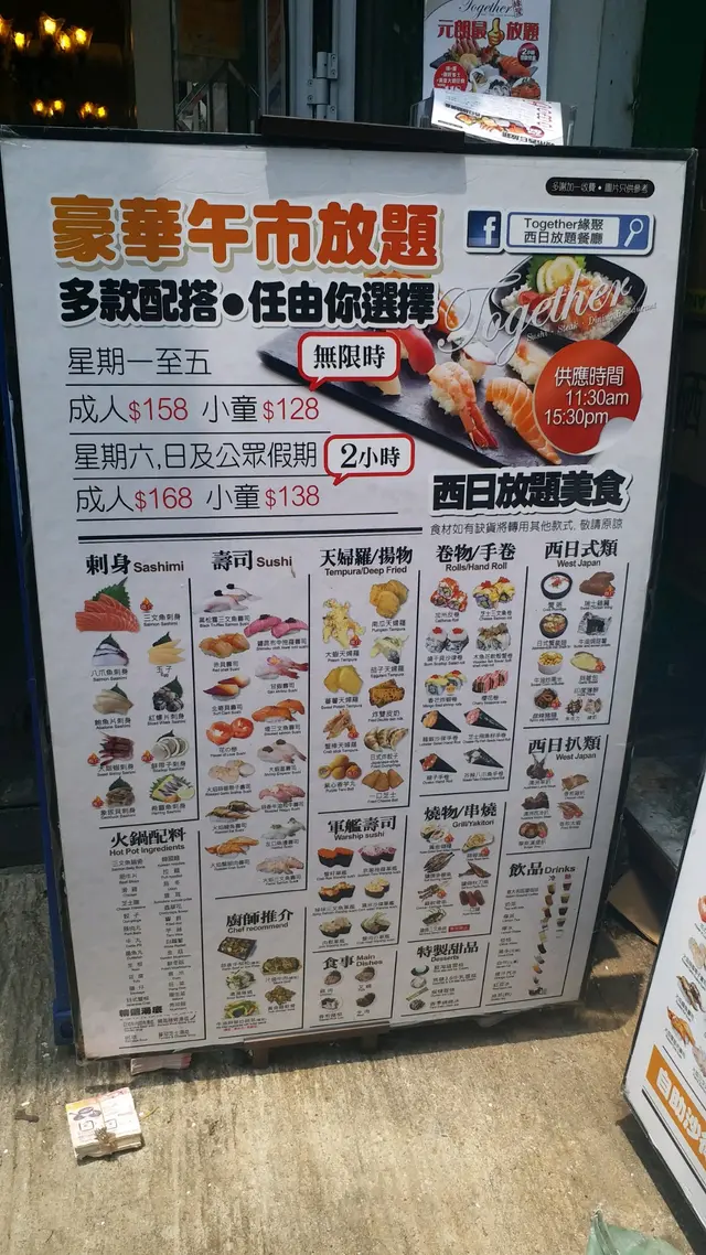 成人 158元, 由11點半至下午3點半,不限時間, 認真抵食。