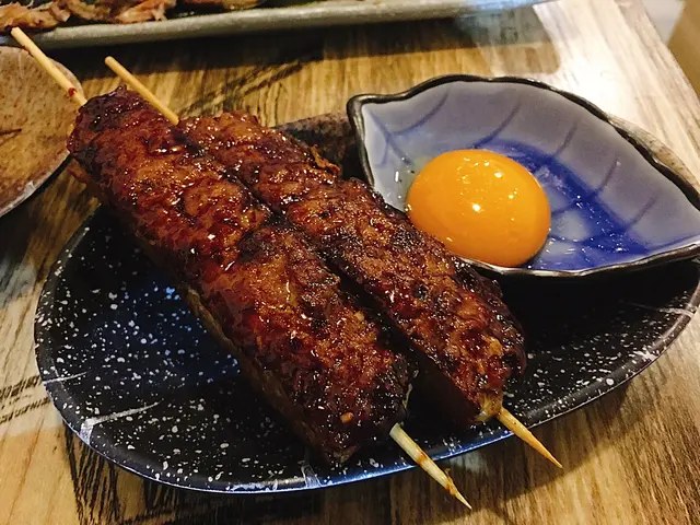 免治雞肉串,大大兩串,性價比高。雞肉棒燒汁加上生蛋黃月見汁,非常美味。