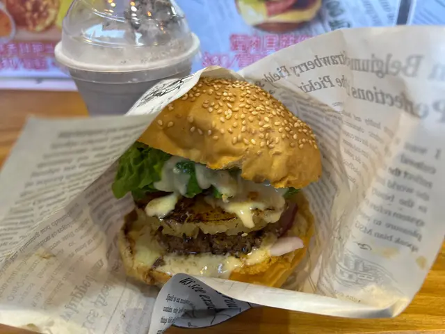 貓霸漢堡,係兩塊牛肉配上菠蘿同生菜,令每啖都好juicy,配搭蜜糖芥末醬令味道帶起左少少甜味。