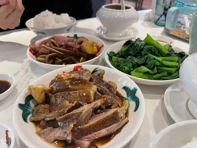 最後睇完餐牌,決定試下個二人餐!佢包兩個小食,兩碗例湯,兩碗飯,一碟菜,野飲加$8,同埋佢地最有名既鵝肉!!都好抵食個餐。整體黎講,可以話好有屋企飯既味道,而且味道唔會太重,因為我通常都好怕出街食會太咸,但呢到剛剛好。佢最好食一定係鵝肉唔使講,肉質鮮美多汁,同埋感覺好新鮮。整體黎講我會俾90分,值得一試,而且我會返去再食😝
