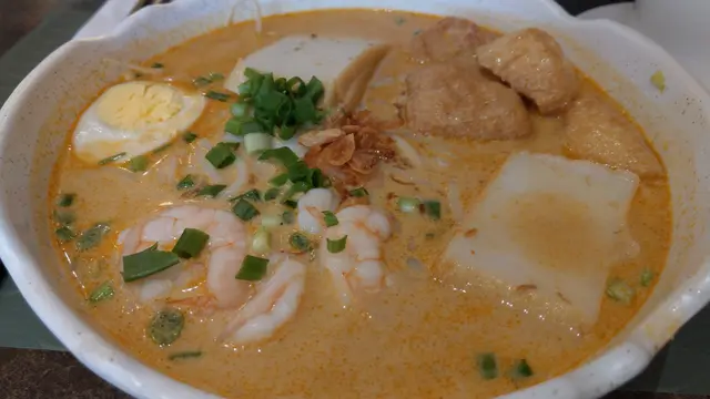 友人點了「星洲喇沙蝦米線」,不辣,適合不喜歡辣的人,但椰香甜味稍為不足,只得鹹味。配料方面,份量充足,還吸收了喇沙的味道。米線配合芽菜一起吃,十分爽口。