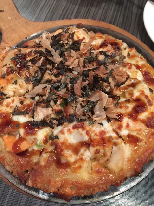 是日主打,第一次吃的米薄餅,選了帆立貝。米薄餅外圍脆脆的,口感烤得不像飯。