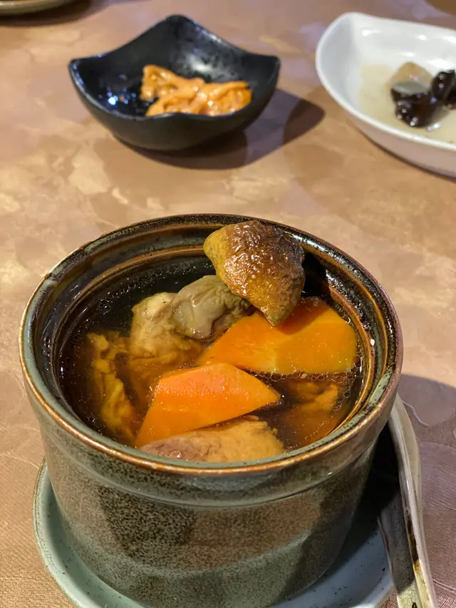 原盅燉姬松茸淮山甘筍黑毛豚肉湯
