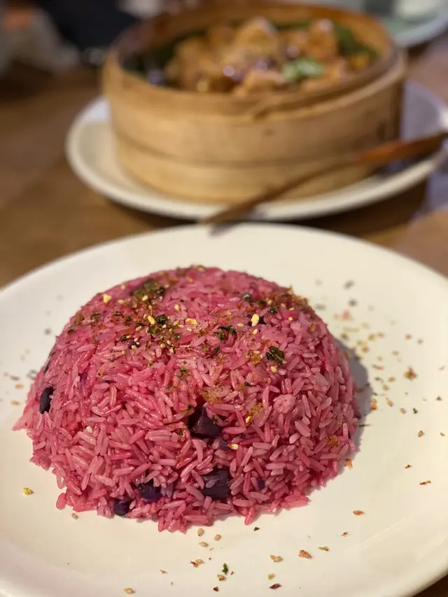紅菜頭汁炒再配上紫薯粒,健康又色香味俱全。 其實上炒飯時,大家都食到好飽,但炒飯一啲都唔膩,大家好快咁就清左半碟