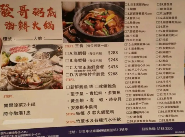 抵食街坊海鮮邊爐 bluemanqqLevel 42020-03-24772 浏览 关注 最近同小胖女向屋企附近見冬菇亭裝修後見到呢間發哥海鮮粥底邊爐,所以要黎試一試佢,新裝修後座位都比較闊落,我地一人叫左一個大胃王海鮮套餐,開餐前店員先送上熱辣辣既虫草花燉雞湯開下胃,海鮮套餐每人可以選食材,我地梗係一人一隻鮑魚無走雞先啦,另外海鮮方面都樣樣齊,有龍蝦,蟶子皇,鮮海蝦,魚片同蜆,值得一提餐牌上有教埋每樣食材要煮幾耐,十分貼心,當然各款汽水同自家制竹蔗矛根入飲係基本野啦,食樣個堆海鮮都飽哂,再食埋各式肥牛配料,配埋個海鮮粥真係超級抵食2以上食记乃用户个人意见 , 并不代表OpenRice之观点。赞好分享抵食街坊海鮮邊爐 發哥粥底海鮮火鍋 https://s.openrice.com/QrKT0IqSu00检举 张贴 评分4味道4环境4服务4卫生4抵食用餐途径Dine In
