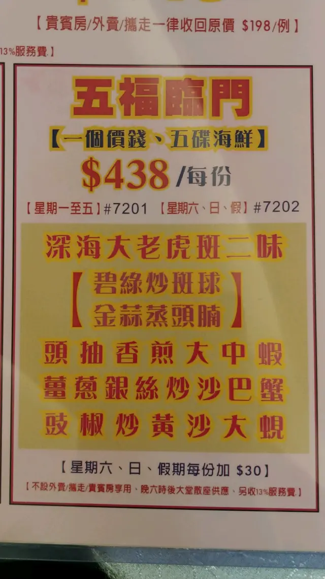 「五福臨門海鮮餐」內容豐富: