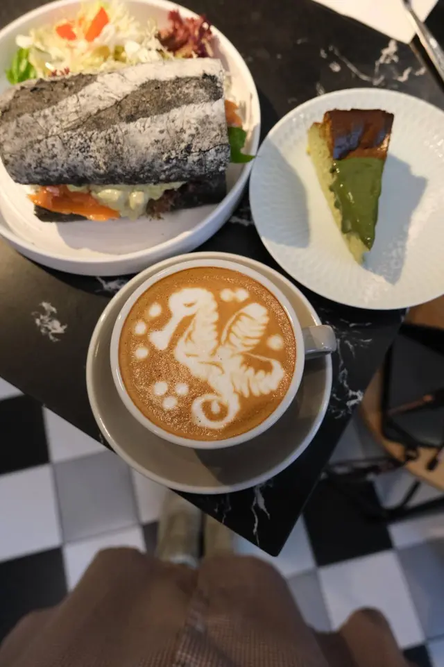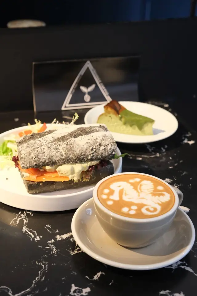 同想像中嘅三文治好唔同🥪呢個三文治用黑竹炭越南包,外皮脆脆厚實,要用力切開,中間夾住超大量嘅牛油果醬🍐好多塊煙三文魚🤩同大量沙律菜🌱 份量十足嘅一個三文治😝