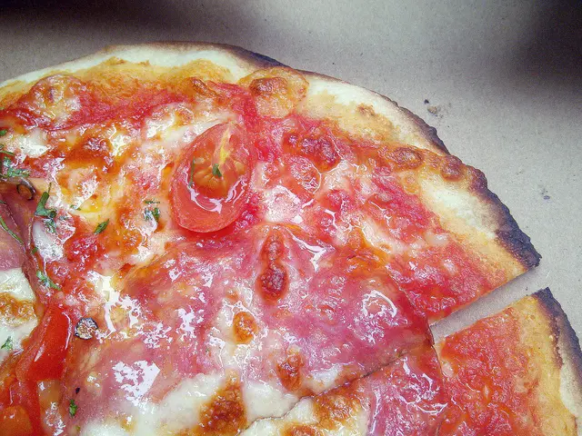 打鐵就要趁熱,立刻拿了一塊來吃。咬了一小口,頓覺蕃茄味非常出眾。相信那蕃茄醬是新鮮造的,酸酸甜甜很新鮮!它甚至蓋過了芝士的味道-又或者是芝士的份量太少了,沒有甚麼牽絲的效果。