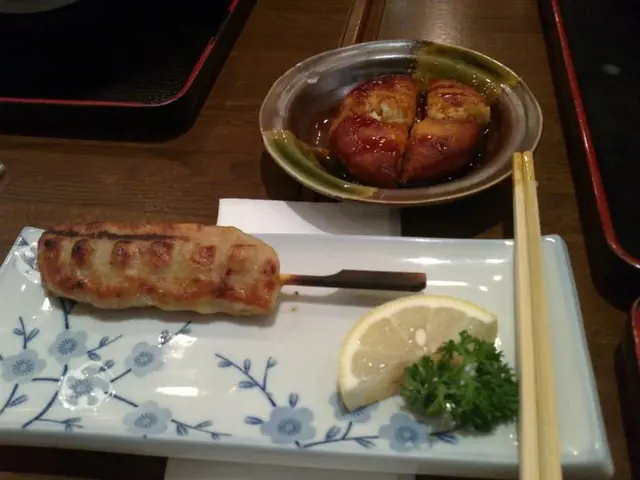免治雞肉串 (都係比較乾, 又無俾雞蛋打蛋汁) + 炸薯仔芝士年糕 (一上即食煙煙韌韌最好食, 擺耐左無咁好, 唔駛點咁多汁都可以)
