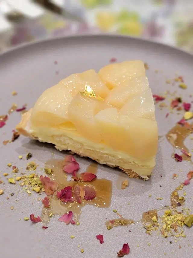 食物我地點咗麻辣薯條,好惹味夠曬刺激!加上熱辣辣,轉眼間就清哂!另外,我地叫咗兩件cake, 我就最鐘意蛋白檸檬撻, 碟上面仲好有心思灑咗啲花瓣,好清新味道好夾又唔太酸👍而我老公鐘意食白桃撻,大大粒白桃果肉係上面,甜甜地有咬口!