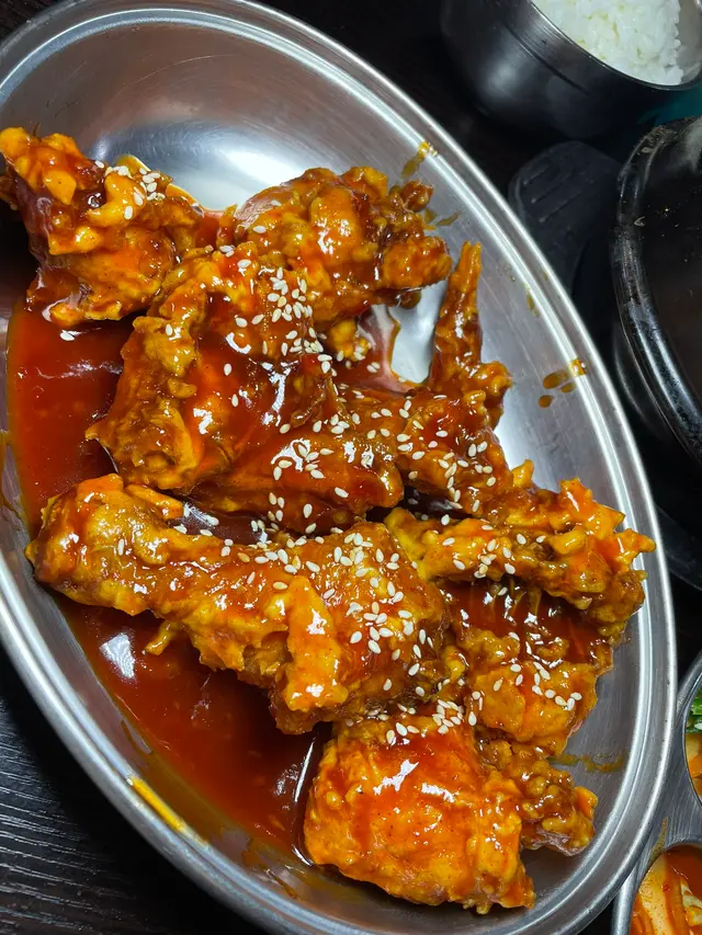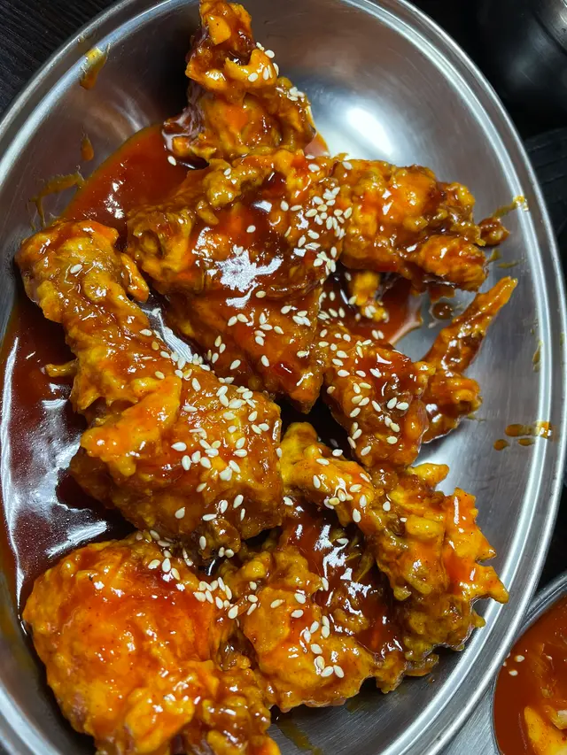 最後,主菜的讓人拍案叫絕!炸雞外皮炸得剛剛好,金黃酥脆,搭配酸甜濃郁的韓式醬汁,即使醬料覆蓋,也依然保持外皮的脆感。咬下去時,內裡的雞肉鮮嫩多汁,外酥內嫩的口感實在讓人愛不釋口。