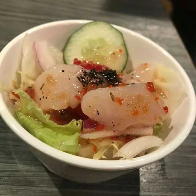 朋友軍佬係沙律怪,全部D黑松露帶子沙律,柚子大蝦沙律,蟹肉胡麻豆腐,海葡萄沙律統統食齊,基我沙律唔太喜,但有吃胡麻豆腐, D豆腐豆味好濃,豆腐又夠嫩滑,好吃。
