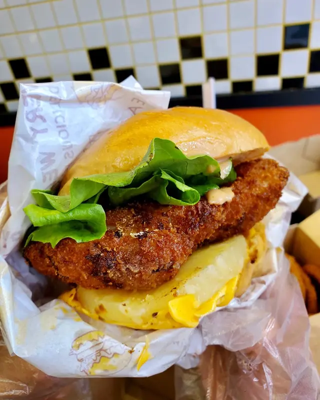 唔食牛肉嘅朋友揀咗呢款菠蘿雞堡 食落有驚喜喎🍍 炸雞扒大大塊 調味啱啱好仲好juicy 配埋菠蘿清新唔會膩☀️