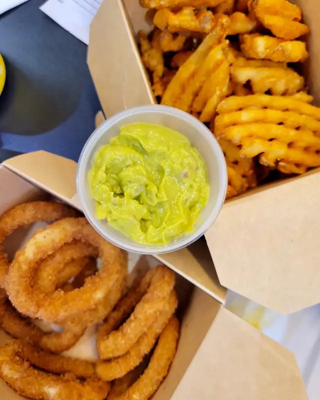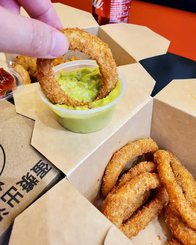 我哋加配咗兩款小食 雖然薯格同洋蔥圈都係大路嘢 不過佢炸得好脆而且乾身 食落唔油膩 抵讚🙌🏻 另外加錢仲可以試唔同口味嘅醬 我哋今次就試咗牛油果醬 🥑 本身想試埋青山炸雞不過咁啱賣曬 約好咗個friend下次去開花墟再嚟食😉