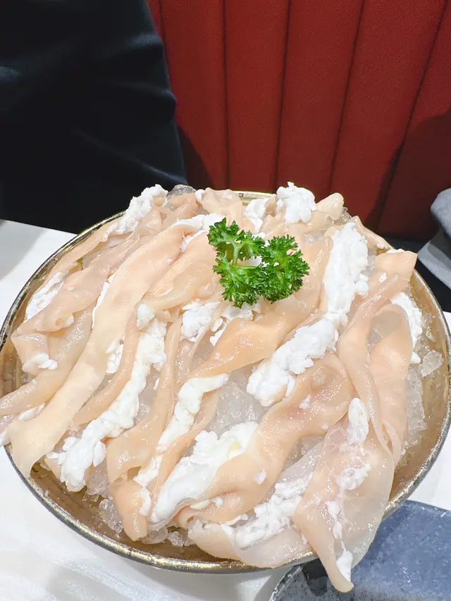 !涼拌海蜇同脆鱘背腩可以二選一,海蜇爽口,背腩外脆內嫩都好正~象拔蚌