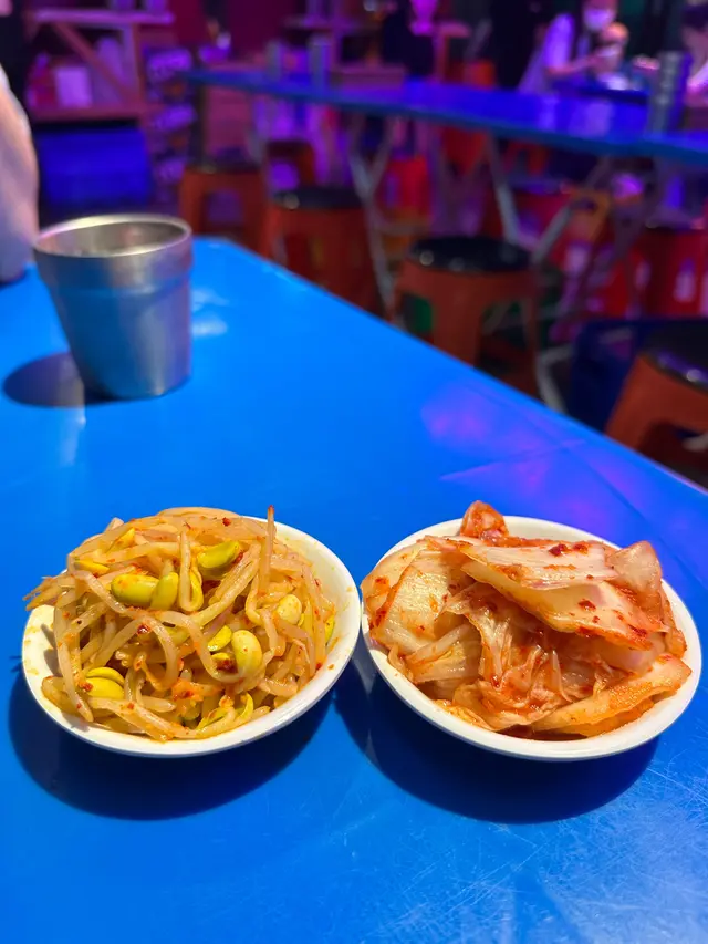 每台都有泡菜同芽菜作為餐前小菜