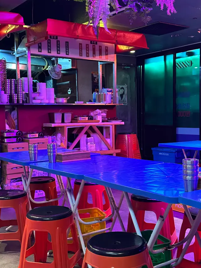 餐廳裝修得好有特色,以紅藍為主