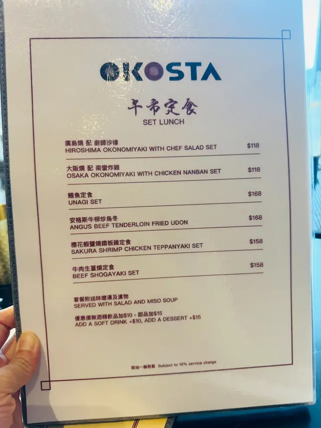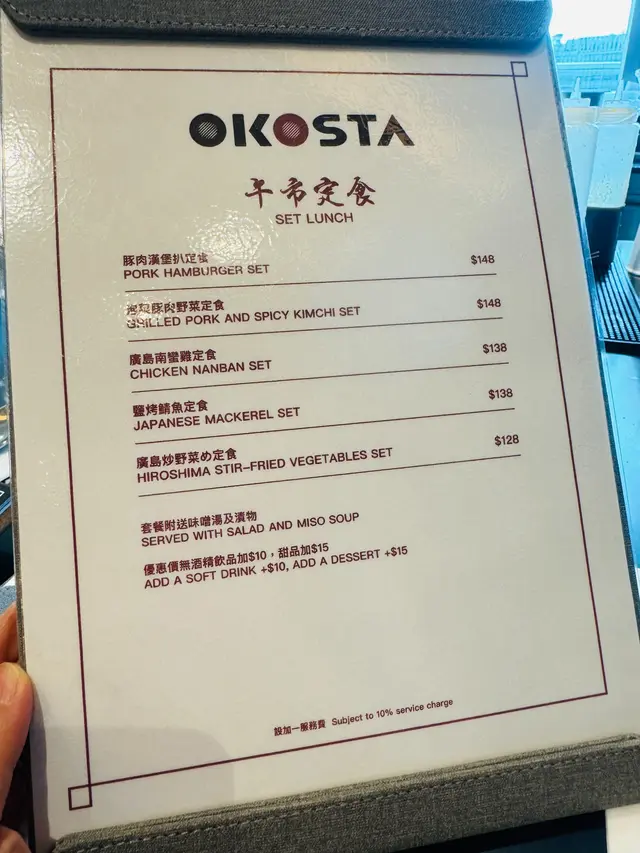 推介廣島燒 雞翼尖Level 42025-09-30 Follow 這間OKOSTA主打正宗廣島燒和鐵板燒料理,環境開揚舒服,星期六的下午都有提供午市定食,頗為抵食。坐吧枱位更可以享受師傅在客人面前席前即製。點了招牌的廣島燒配廚師沙律,師傅將麵糊、魚粉、椰菜、炸天婦羅脆脆、大蔥、芽菜、豬肉片、麵條、雞蛋、御好燒醬和綠海藻,逐層烘烤,配撘豐富,食到蔬菜的的甜味,麵條可令你有飽肚感。另外點了豚肉漢堡扒定食,兩塊厚厚的漢堡扒多汁肉香濃郁,淋上特製醬汁,很好送飯。兩個套餐都附送味噌湯及瀆物。餐廳還有一些小食提供,這個糖醋漬青瓜八爪魚酸酸甜甜,很開胃。The above review is the personal opinion of a user which does not represent OpenRice's point of view.LikeShare御將燒 (雙子匯1期) https://s.openrice.com/QrKT0gA1U00Report Post Ratings5Taste5Decor5Service5Hygiene5ValueDate of Visit2025-09-28Dining MethodDine InSpending Per Head$170 (Lunch)