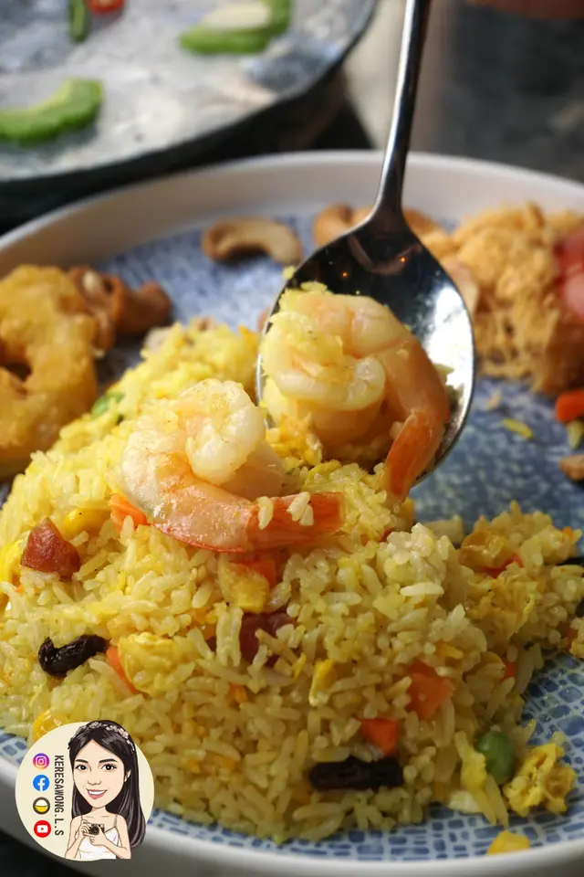 菠蘿炒飯就稍為有D失望, 唔算有穫氣, 菠蘿味不太突出, 內藏兩隻爽口蝦、提子乾、肉鬆同埋雜菜粒。