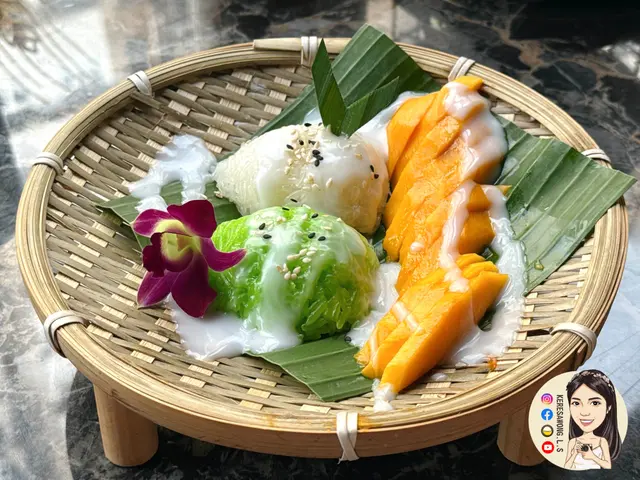 芒果香甜多汁, 黏笠軟糯口感嘅糯米飯以椰漿調味, 甜甜地又帶些少鹹香; 而自選嘅泰奶口感香滑。