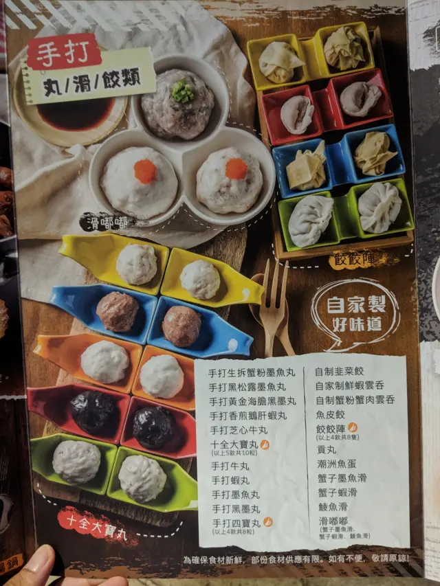 我地點左手打四寶丸,分別有牛丸、蝦丸、墨魚丸同埋黑墨丸,每款肉丸兩件。其寶可以專點某一種丸,但係四寶丸咩都試下係唔錯嘅選擇。的丸都幾大粒爽口彈牙。