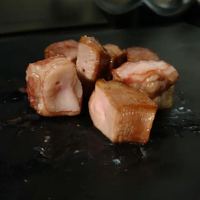 燒豬大腸。原本都冇order, 但聽見隔離枱瘋狂encore,我地又叫黎試下羅。真係好正,外皮脆卜卜,內里啖啖肥油,勁邪惡。