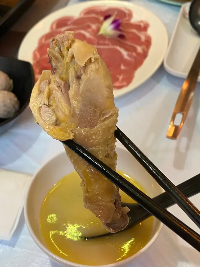 店員建議一開頭先飲左啲湯,之後先開始打邊爐。個湯真係好鮮甜好濃雞湯,雞肉嫩滑,花膠煲到好重膠質仲好爽,湯底唔會過於油膩,而且湯底真係好足料,花膠同雞食極都未食完