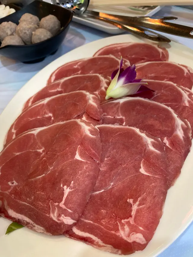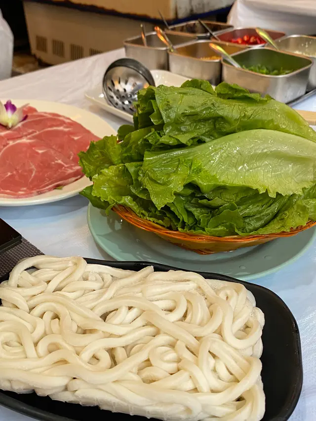 叫左碟羊肉片、烏冬、生菜、牛骨汁濃湯牛丸,都已經食到我地捧住個肚走~