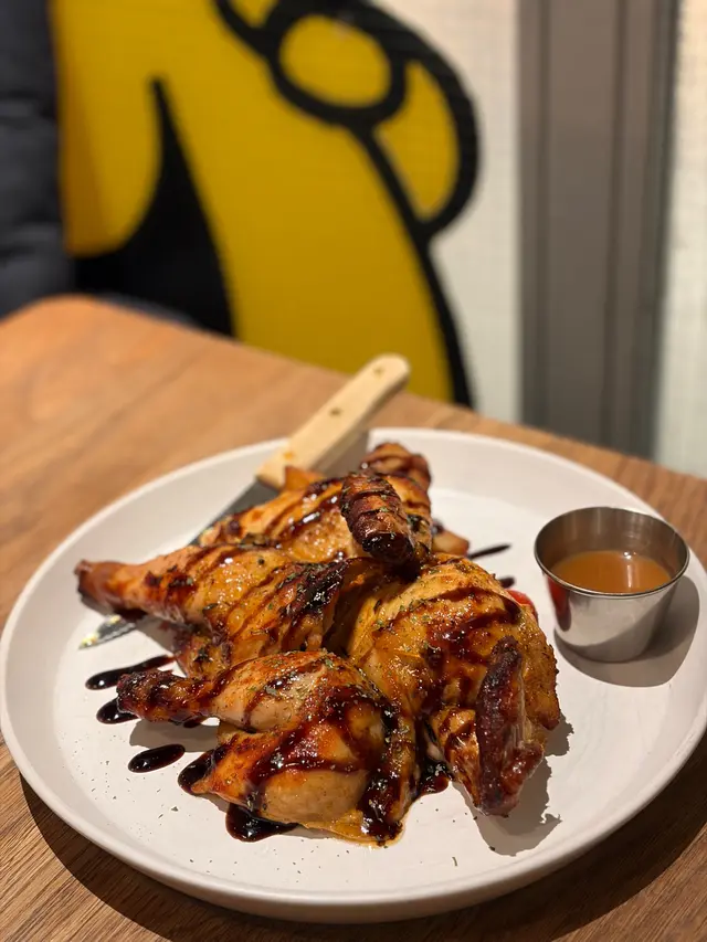 最貼心既位係佢分好同切好左隻雞,同朋友share好方便! 雞肉好juicy,配上柚子蜜,感覺好清新唔會膩。雞皮位燒得好靚,有脆皮位置。仲有薯角,惹味又香口。