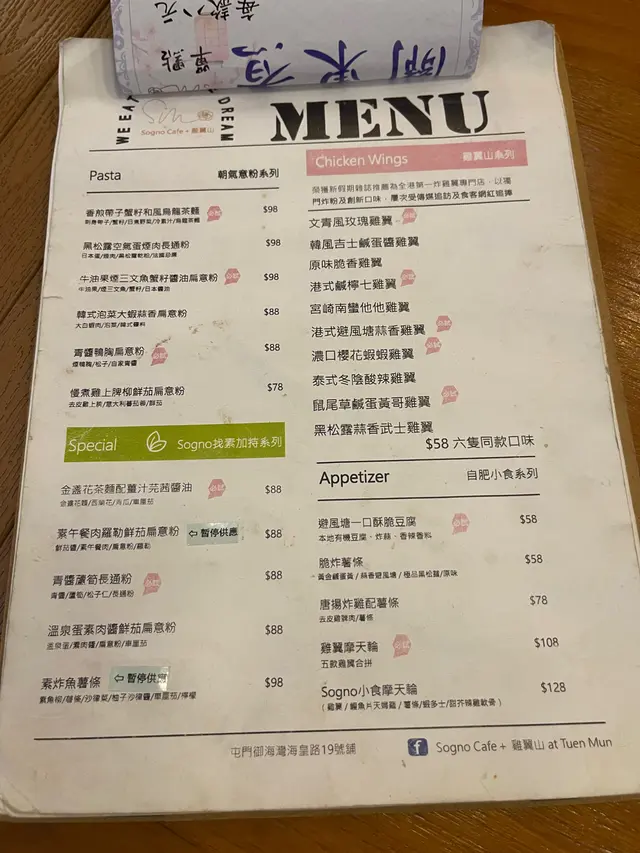 剛由大澳坐船回屯門,時間尚早,想吃個早晚餐,來到御海灣Sogno Cafe x 雞翼山,開業初期來幫襯過一次,當時吃烏龍茶麵、咖啡,味道不錯。