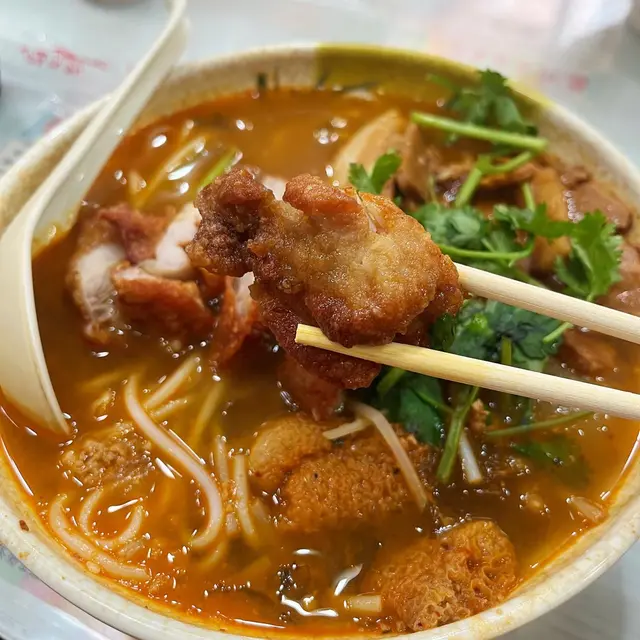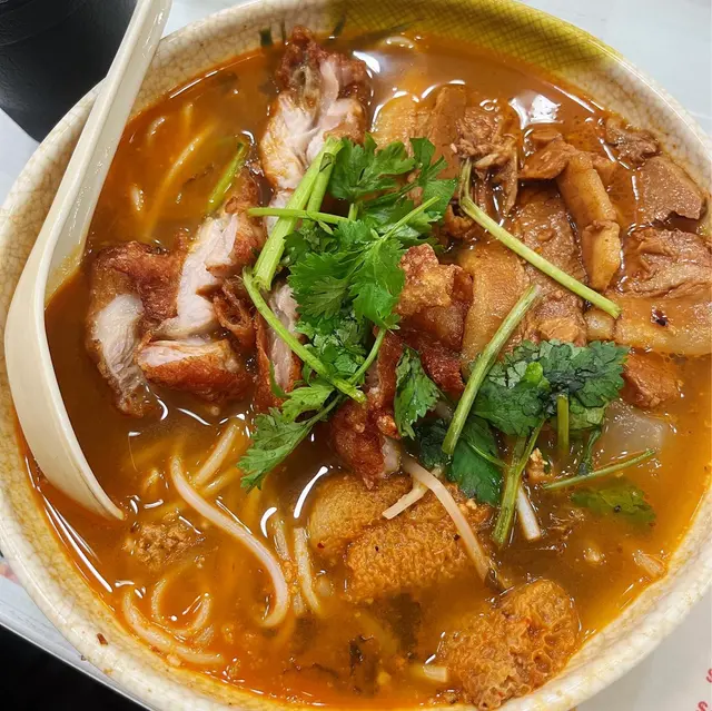 🍜炸雞扒、招牌腩肉、竹笙、蘿蔔酸麻辣米線(小小辣)