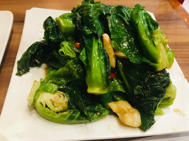 雖然菜單寫有辣味,但辣味好淡。椰菜苗翠綠爽口,鹹鹹地,略嫌油多左點。
