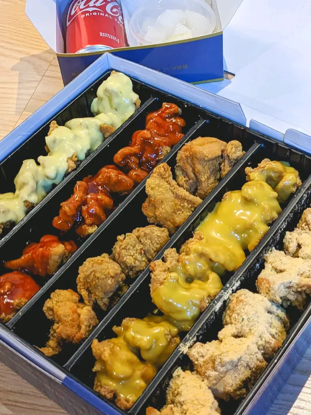 分別有,雙重芝味,經典原味、蜜糖芥末、特色甜辣同埋洋蔥蛋黃醬,一上枱就好surprise,個擺盤好靚,一盒有齊咁多個味,好正呀!而且炸雞炸到脆卜卜,入面仲好juicy,五個味都好好味,我最鍾意雙重芝味,超多芝士粉😍
